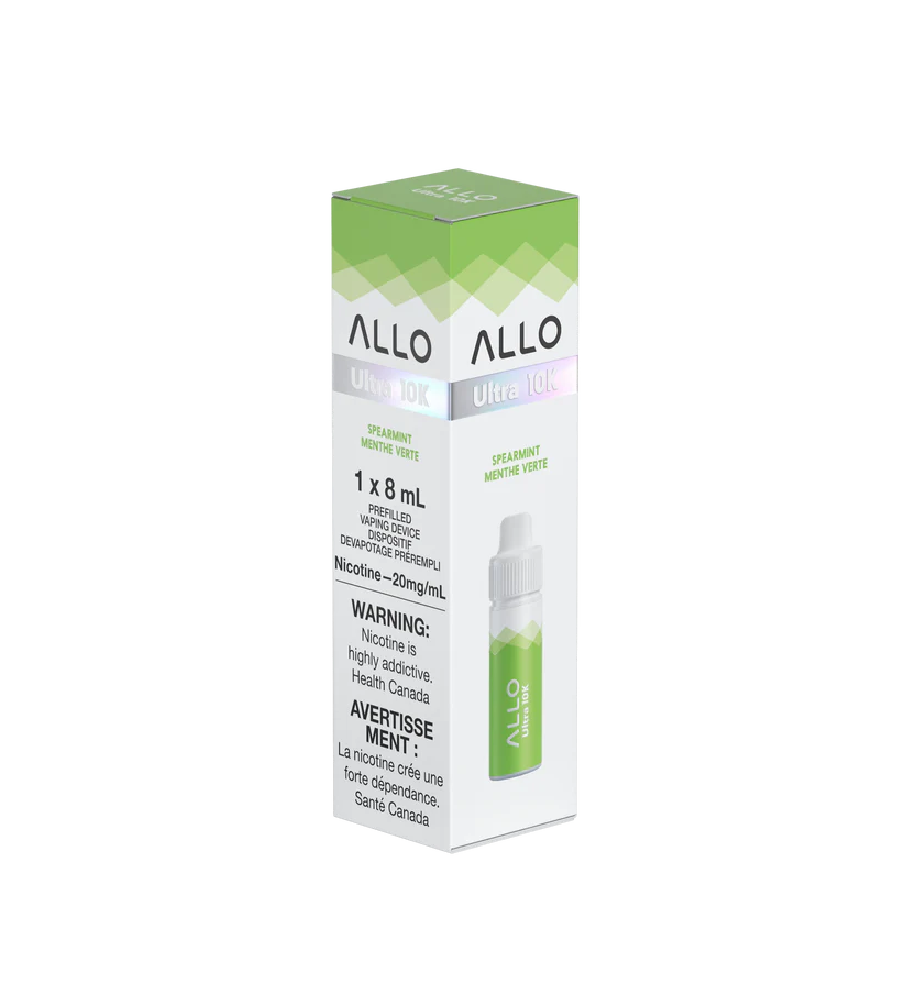 If your palate needs a reset or you just love that minty-fresh kick, the Spearmint Allo Ultra 10K Disposable Vape is your trusty wingman. Unlike those frosty blends that blast your lungs with peppermint ice, this one is smoother — softer on the inhale with a cooling sweetness that glides across your tongue like chewing fresh spearmint gum. No harsh throat hit, no bitterness — just clean, crisp, cooling goodness.